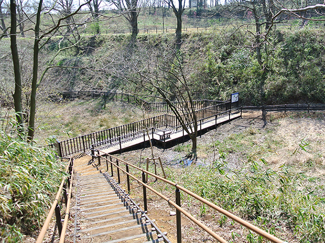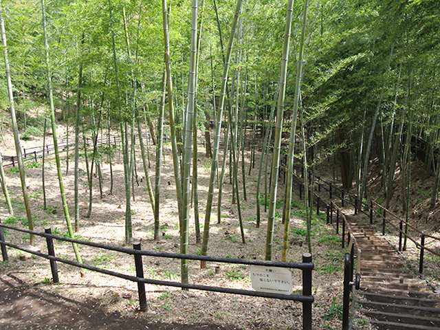 今回の工事では、基盤整備、設備、園路広場、サービス施設、管理施設等の整備をしました。レンガ造りのトンネル遺構や湿性植物の谷や竹林などがあります。